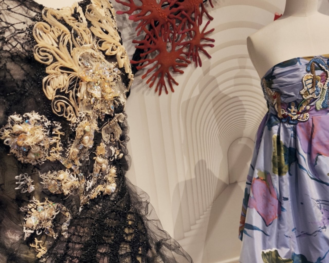 Dans cette exposition, vous pourrez admirer différentes pièces Christian LACROIX, telle qu'une très belle robe brodée ainsi qu'un magnifique manteau, qui font parties de sa collection Haute Couture de l'année 1998 ; année où il crée notamment les costumes du ballet « La Valse des bonbons », pour l'Opéra de Vienne.