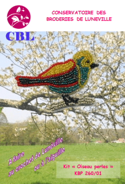 Ce kit contient : une toile (singalette) imprimée, des fournitures (perles, paillettes), une aiguille à perles et une notice explicative.