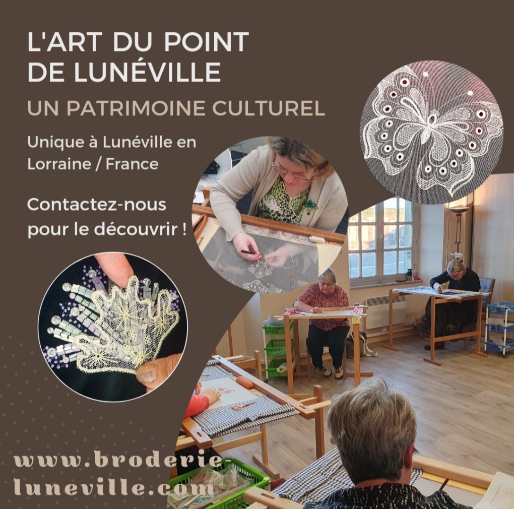 Seule l'Ecole du Conservatoire des Broderies de Lunéville vous enseignera cette technique ancestrale. Le Point de Lunéville est une marque déposée.